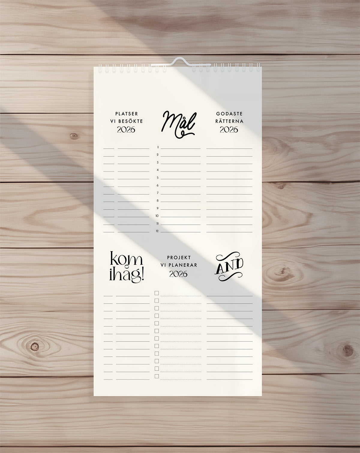 Sjuttonde upplagan av IsaForms populära Familjekalender! Kalendern hjälper till att hålla ordning på vardagskarusellen där var och en i en familj med upp till sex familjemedlemmar har sin egen kolumn för att planera veckan. Kalendern innehåller månaderna januari-december 2026 med en illustration per månad. På sista sidan finns plats för mål, telefonnummer, projekt, favoritmaten och annat kul. På baksidan finns en mindre kalender för hela året.