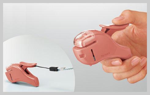 KOKUYO Harinacs är en klammerlös häftapparat som kombinerar smart design med hållbar funktion. Den kompakta modellen i är enkel att använda och kan binda upp till fem ark 80g papper. Eftersom den inte använder några häftklammer, förenklar det vid sortering och återvinning av papper.