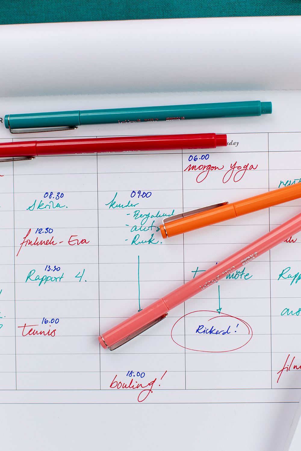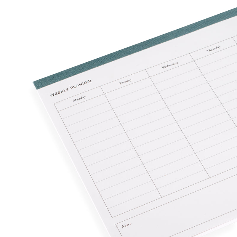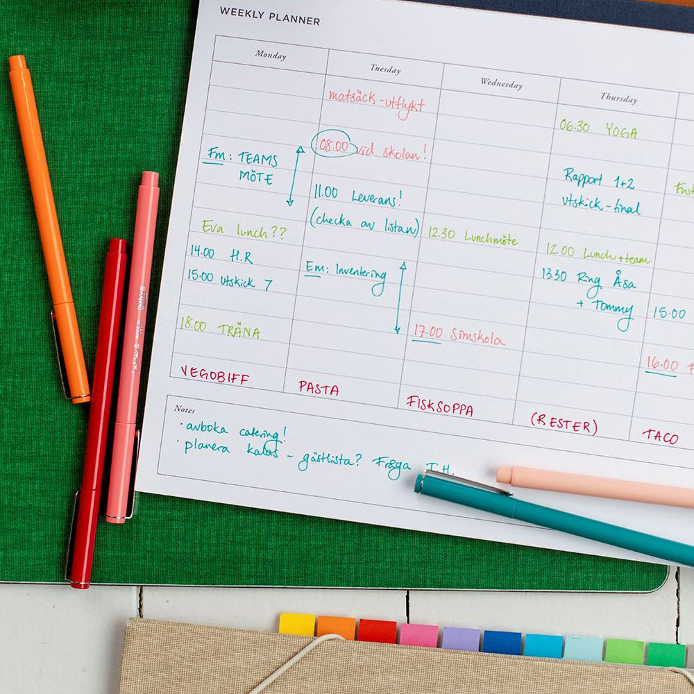 Ett block med avrivningsbara perforerade odaterade blad för din veckoplanering.